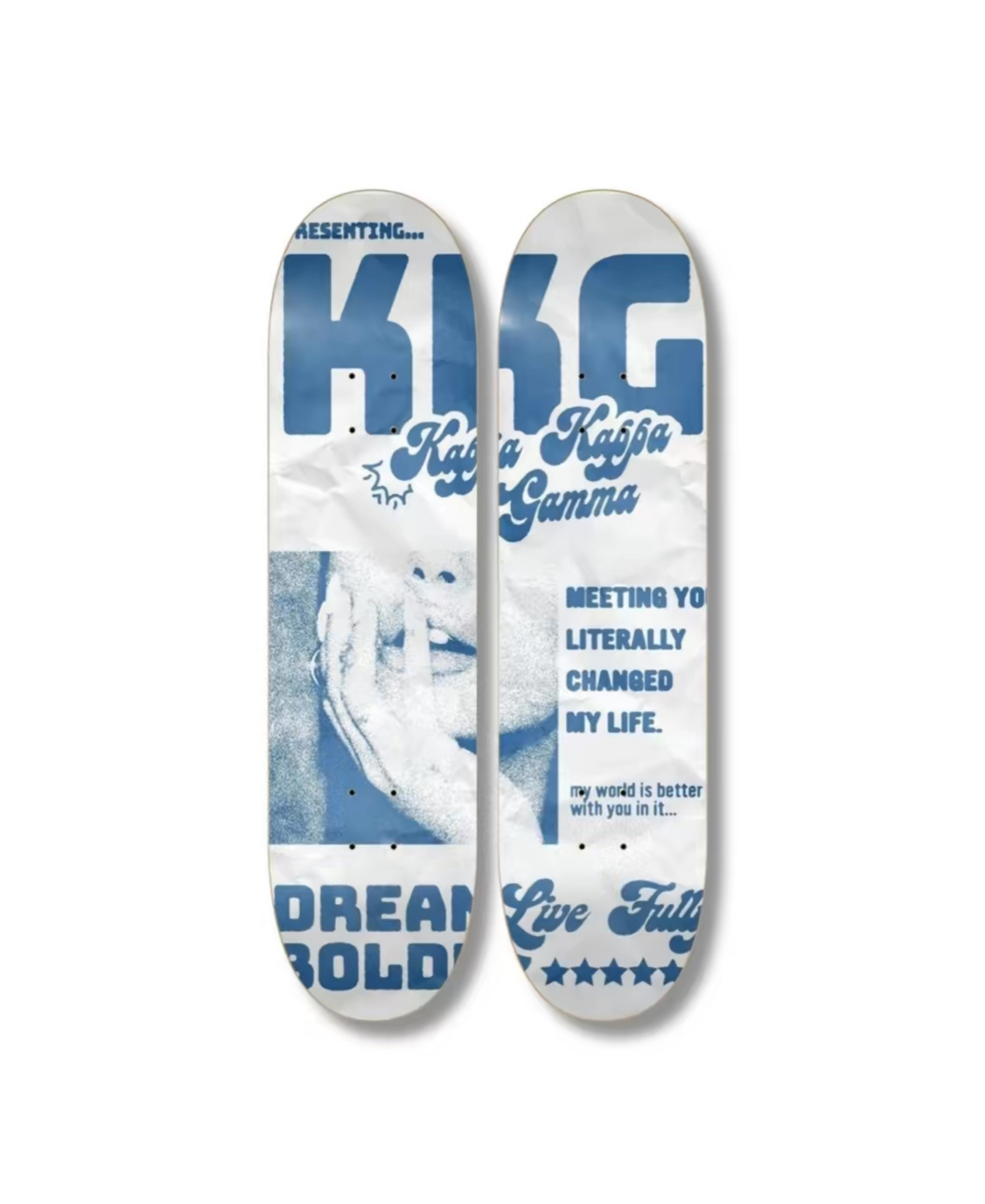 The cutest skateboard set of 2 featuring “KKG” across the boards in a gorgeous shade of blue. Boards come more glossy than they appear.